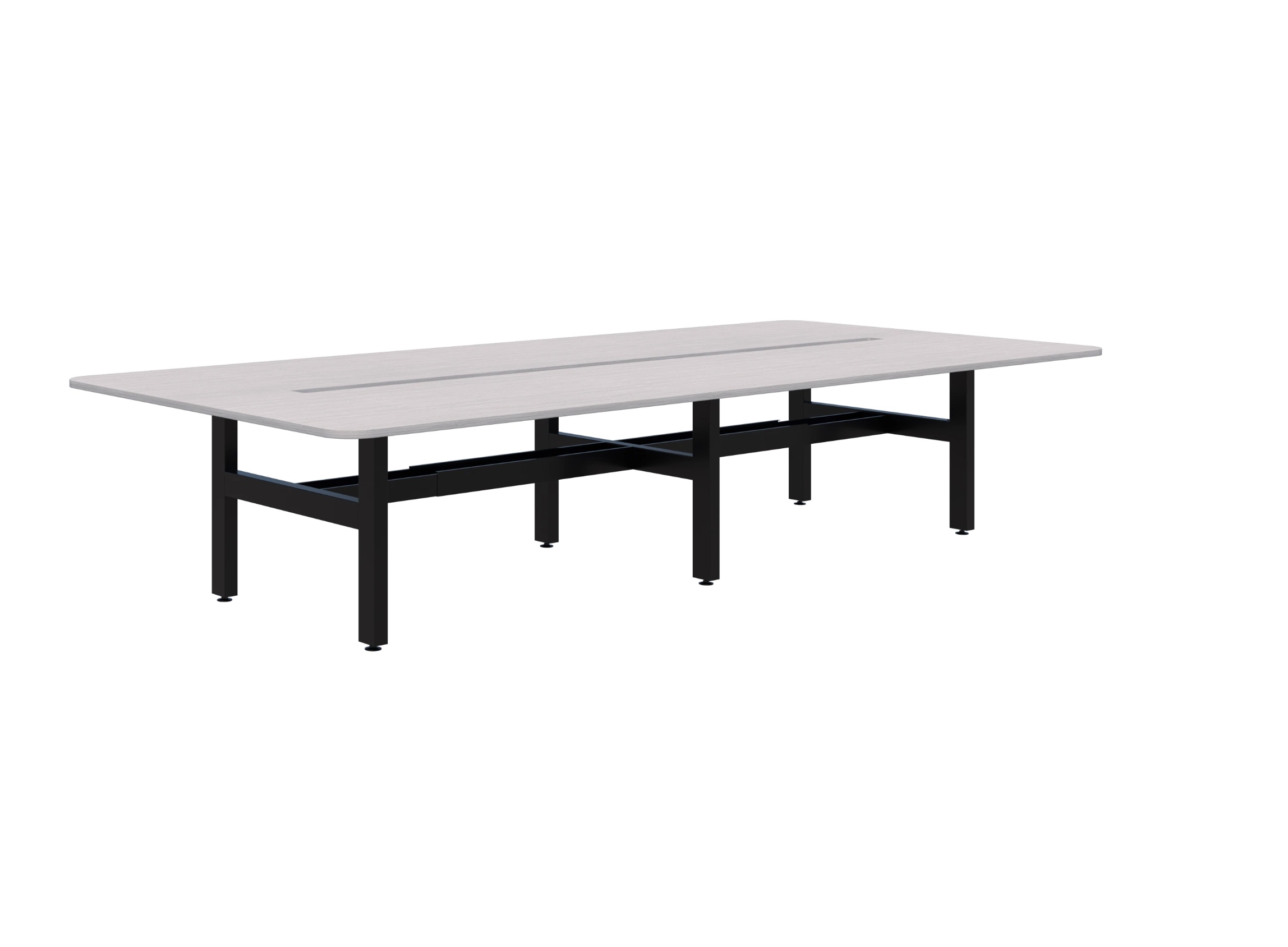 Touch Down Pod produced at two different sizes the 2-4 person pod or the 4-6 person pod. You can get two different finishes on the legs (black or white) and many different finishes on the table top (snow velvet, classic oak, refined oak and silver strata).